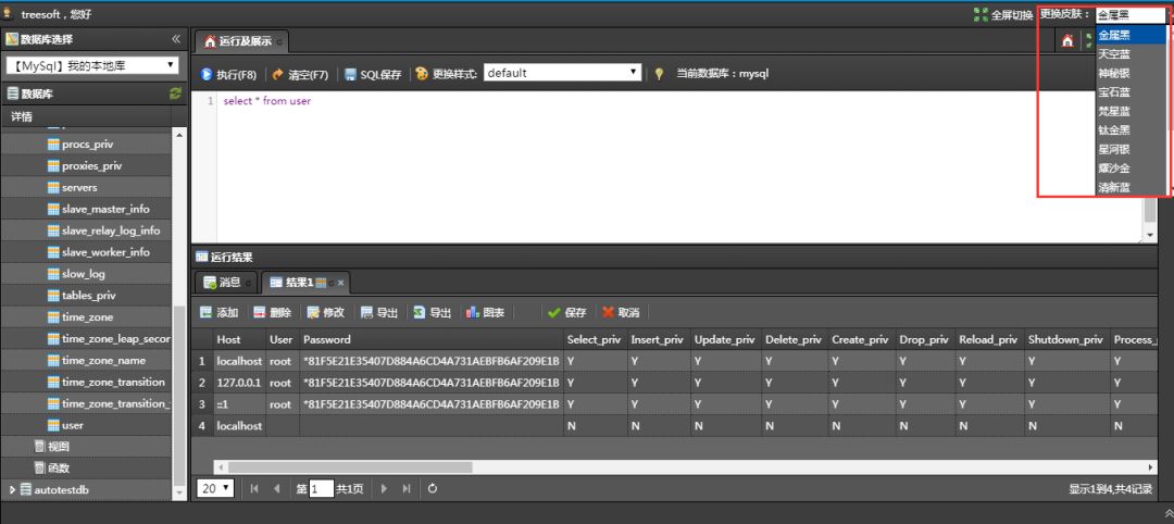 皮肤样式可以自己创建,复制\webapps\treesoft\static\theme目录下的一个css文件,自己更改下颜色值就行