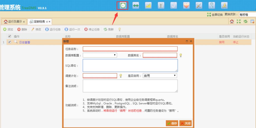 可设置定时执行sql语句,执行结果记录可通过日志查看。