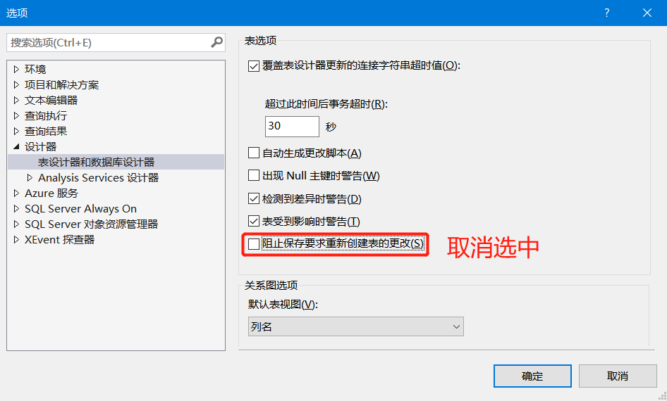 点击菜单栏上的【工具】—【选项】—【设计器】,取消选中【阻止保存要求重新创建表的更改】,点确定回来重新修改表结构就可以正常修改了。如下图:
