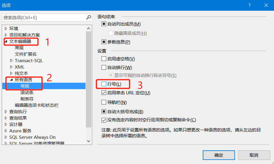 要显示行号还是在上面的选项对话框中配置,具体如下: