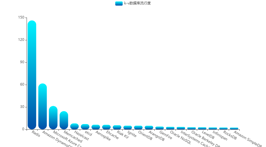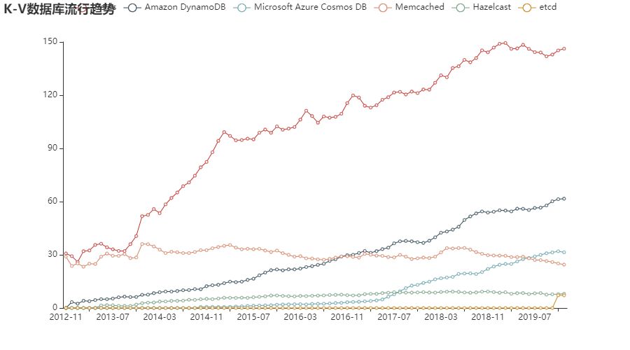 可以看到,2016 年为起点,随着云计算的风起云涌,亚马逊和微软的 K-V 数据库增长迅猛,而 Memcached 则逐渐衰落,但是 Redis 凭借其良好的表现,仍然一路高歌!