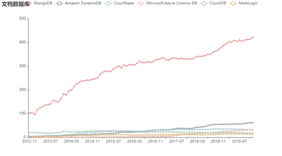 而 Amazon DynamoDB 则从 2017 年开始慢慢占据市场份额,拉开与其他文档数据库的差距。