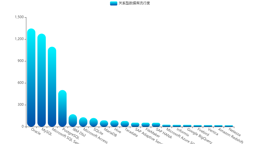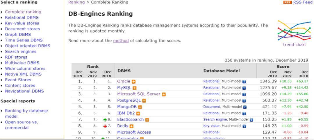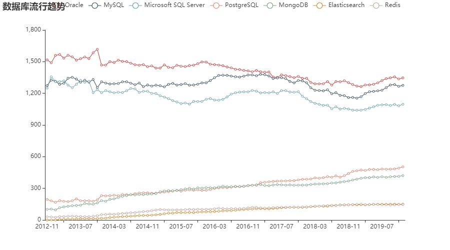 可以看出,关系型数据库还是当今的王者,流行度前四名都被它们所占据,而 Oracle 虽然连年表现不佳,为人诟病,但是依靠多年的积累,仍然牢牢把持着榜首的位置。