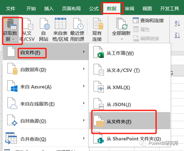 首先将这些相同格式的表放在同一个文件夹中,然后使用PowerQuery获取文件夹的功能。