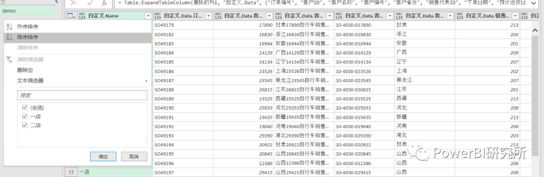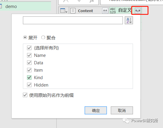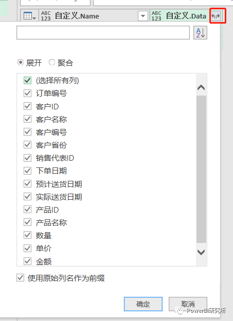 第六步:点击自定义列的展开按钮,点击确定,如图: