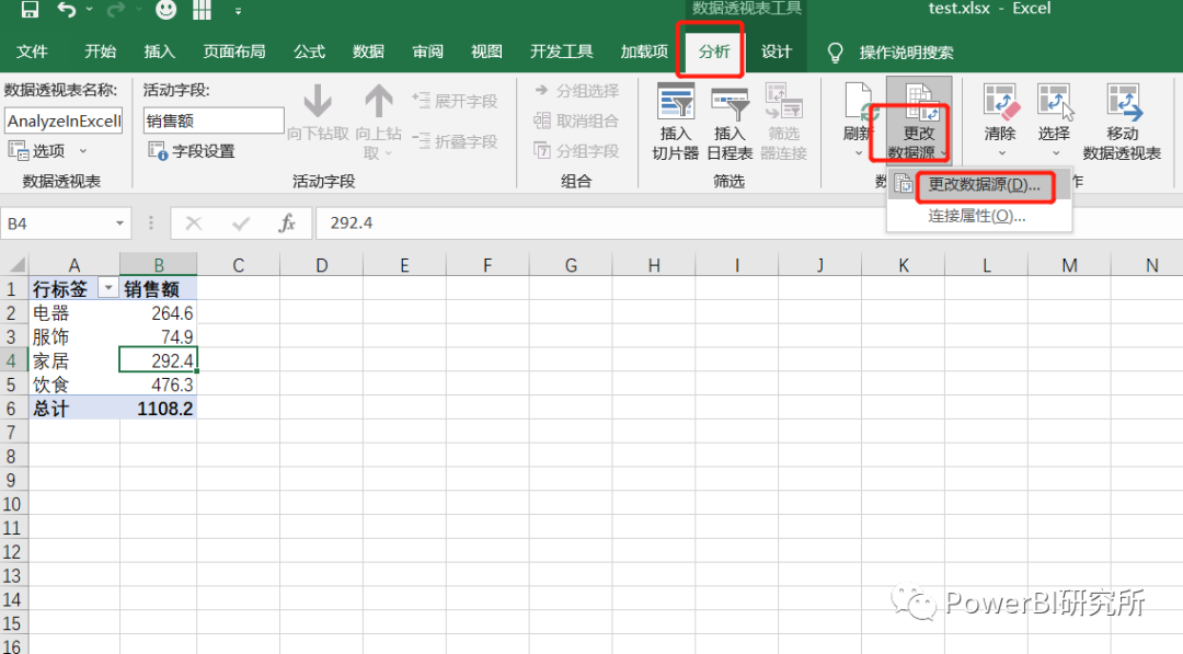 第九步:单击数据透视表,再点击分析-->更改数据源-->更改数据源,如图: