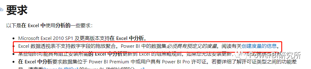 PowerBI官方明确说明,在PowerBI中使用EXCEL的要求: