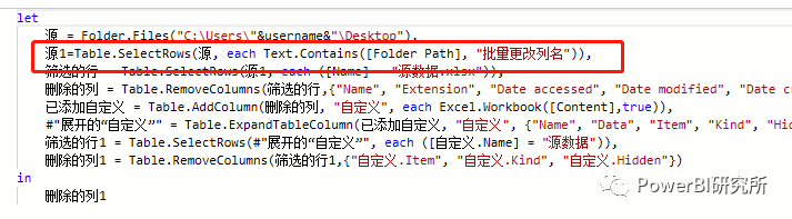 法二:场景,在场景1的情况之下(或者不在),当目标文件移动到其他位置,我们只知道它的大概位置,比如桌面的某一个文件夹的情况。可以使用Text.Contains函数列出桌面的所有文件,然后再进一步筛选,并进行其他操作。如图