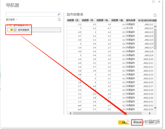 第二步:在导航器选择需要导入的sheet表,点击转换数据,如图: