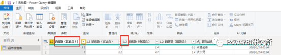 第三步:进入PowerQuery编辑器后,可以对表格进行修改,双击列名可修改表名,点击列名旁边的小按钮(12,ABC等)可以修改格式,如图