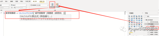 第五步:对数值类型创建度量值,点击建模选项卡->新建度量值,度量值公式可以直接套用,然后依次对其他类别销售额进行新建度量值,最后将文件保存为pbix文件。如图:
