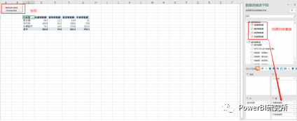 点击按钮,该工作簿将自动链接到正在打开的pbix文件。然后将创建的度量值拖放到值区域,超市品牌列放在行区域。然后可以对生成的透视表进行格式的修改。