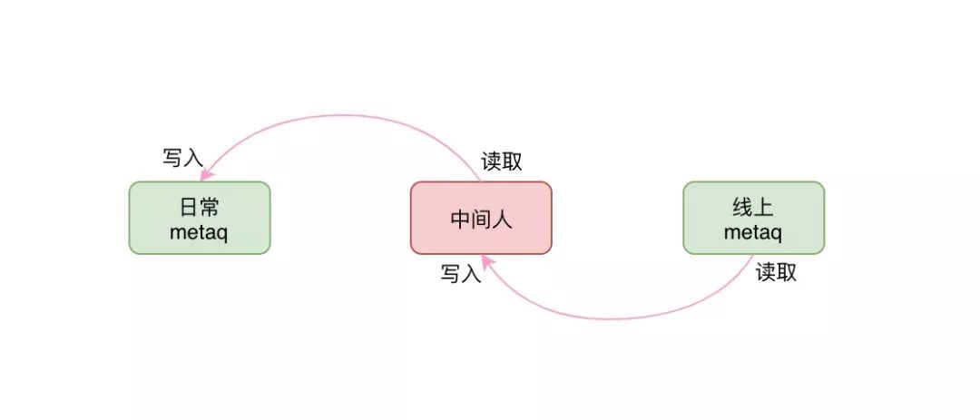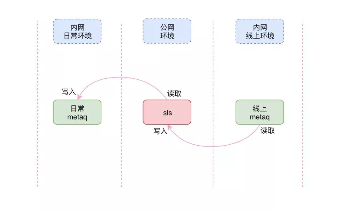 但麻烦的是线上 metaq 和日常的 metaq 是隔离的,网络是不通的,线上的 blink 可以访问到线上的 metaq 但是访问不到日常的 metaq,反之亦然。