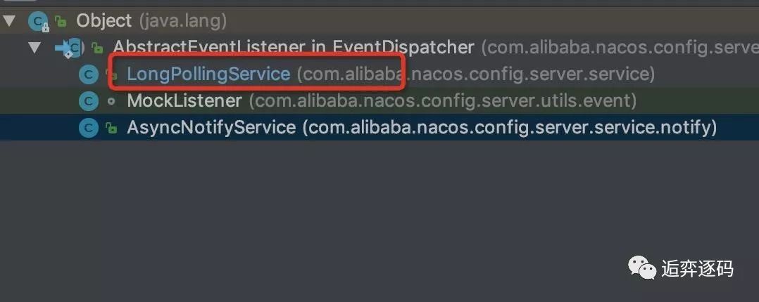 可以看到 AbstractEventListener 所有的子类中,有一个我们熟悉的身影,他就是我们刚刚一直在研究的 LongPollingService。
