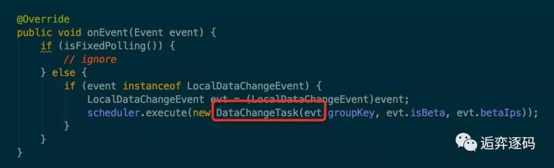 现在我们继续回到 LongPollingService 中,查看一下 onEvent 方法,如下图所示: