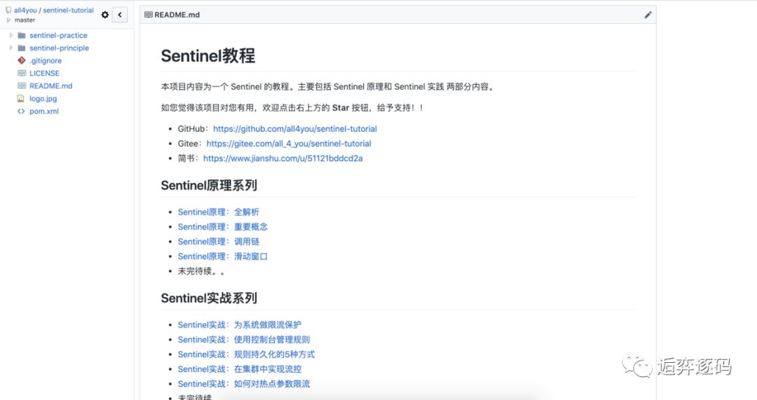 Sentinel 系列教程,现已上传到 github 和 gitee 中: