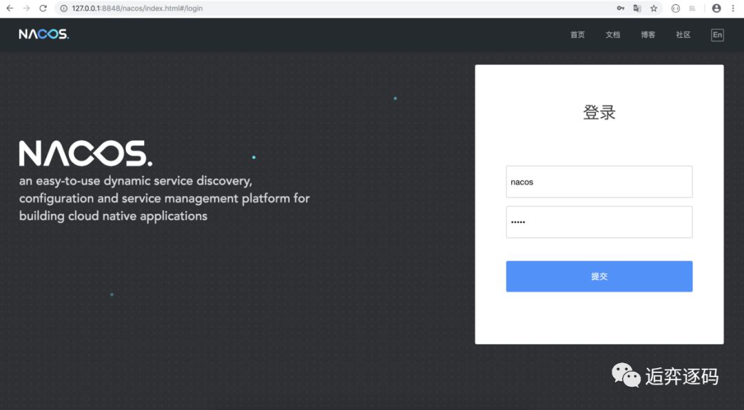 如上图所示,启动成功后,我们可以访问 Nacos 的控制台来进行控制了: