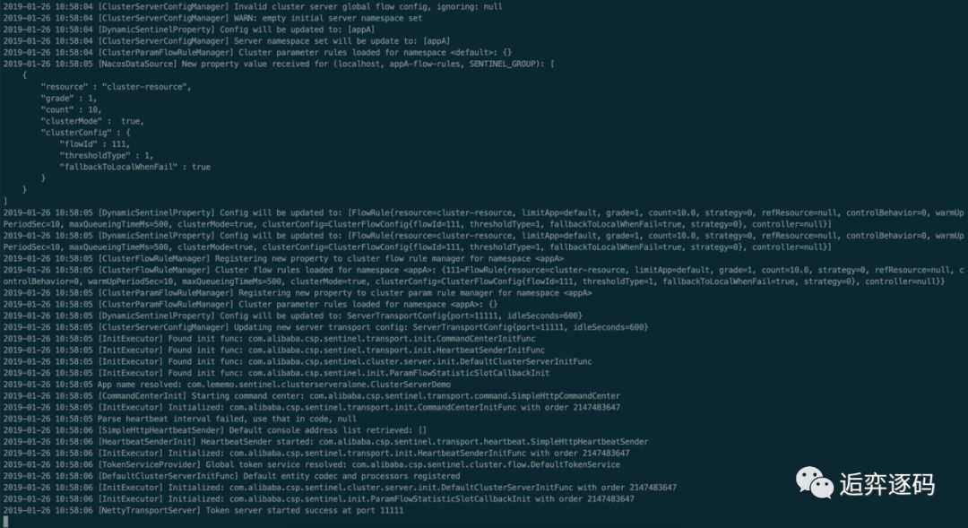 载入了这些配置到 ClusterServerConfigManager 中之后,ClusterTokenServer 在启动的时候,就会去 ClusterServerConfigManager 获取启动所需的配置信息。