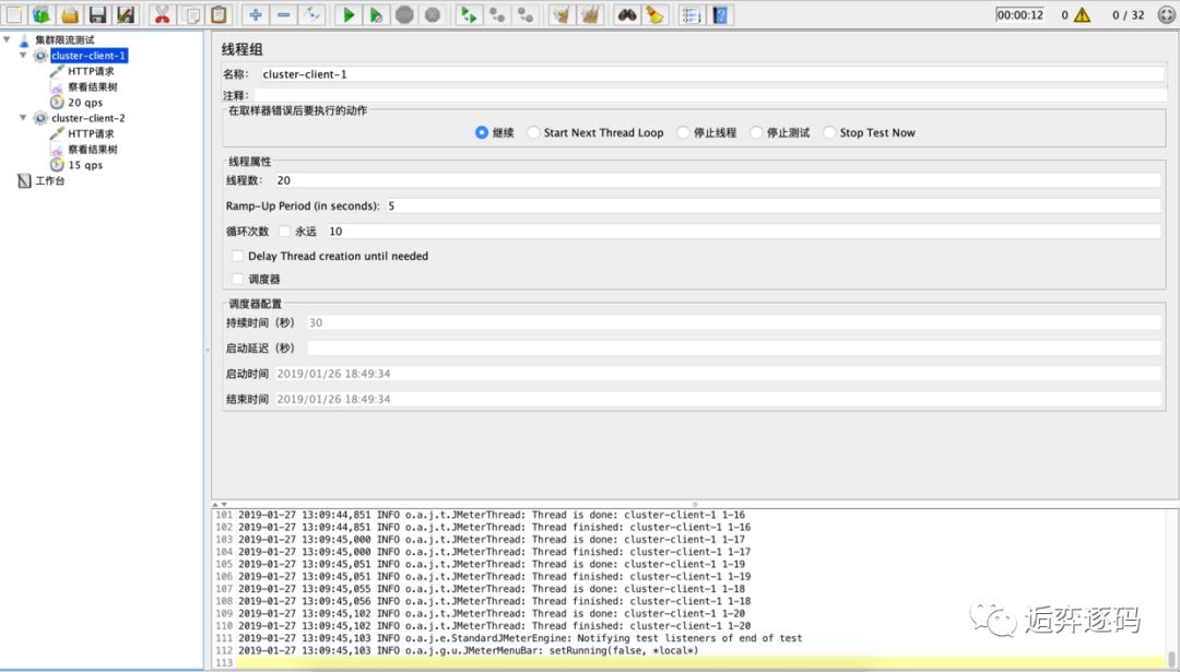 通过 jmeter 模拟流量同时请求两台客户端机器,过一段时间后观察效果。