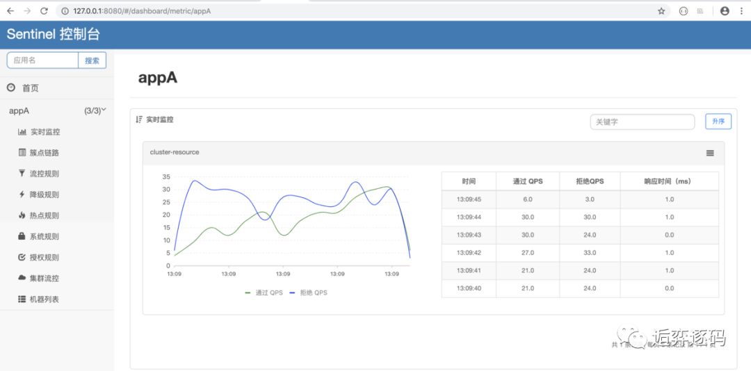 现在我把每个应用上都加上 -Dcsp.sentinel.log.use.pid=true 的参数,再次模拟该请求,观察一下实时监控的结果,发现如下图所示: