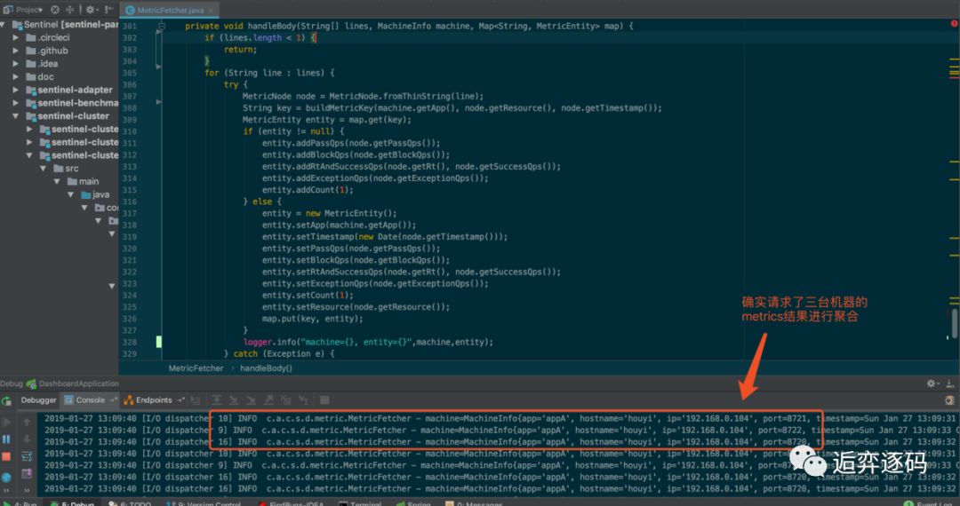 再看 MetricFetcher 中打印的日志,发现也没有再去请求 token-server 的 metric 了,如下图所示: