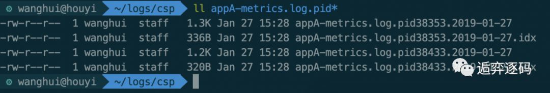再看 metrics 日志文件,发现文件名也带上了进程号: