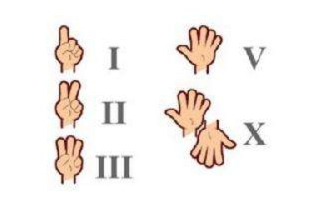 大约在两千五百年前,罗马人还处在文化发展的初期,当时他们用手指作为计算工具。为了表示一、二、三、四个物体,就分别伸出一、二、三、四个手指;表示五个物体就伸出一只手;表示十个物体就伸出两只手。这种习惯人类一直沿用到今天。人们在交谈中,往往就是运用这样的手势来表示数字的。当时,罗马人为了记录这些数字,便在羊皮上画出Ⅰ、Ⅱ、Ⅲ来代替手指的数;要表示一只手时,就写成“Ⅴ”形,表示大指与食指张开的形状;表示两只手时,就画成“ⅤⅤ”形,后来又写成一只手向上,一只手向下的“Ⅹ”,这就是罗马数字的雏形。