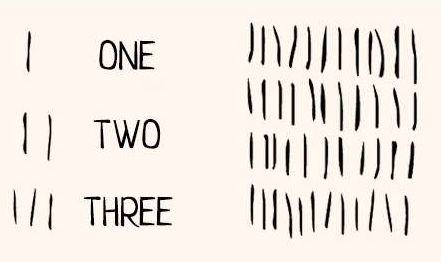 最早人们用线条的多少来表示数字,但是当数字慢慢变多时,这种计数方式很不方便,画的线条会非常多。