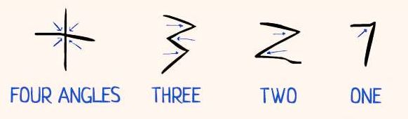 可是我们现代数字中的4,明明不止4个角啊,有可能有5个甚至6个角,这怎么解释啊。