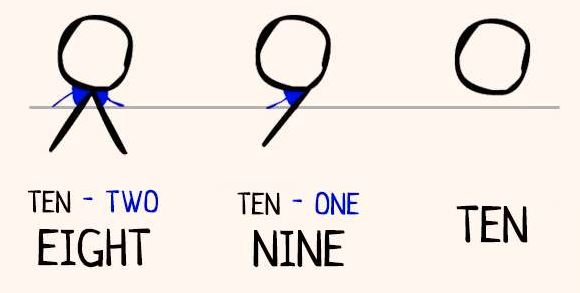 有了5之后,10就很自然而然的得到了,我把两个握紧的拳头举起来,超过水平线,就得到了10,哈哈,太机智了。