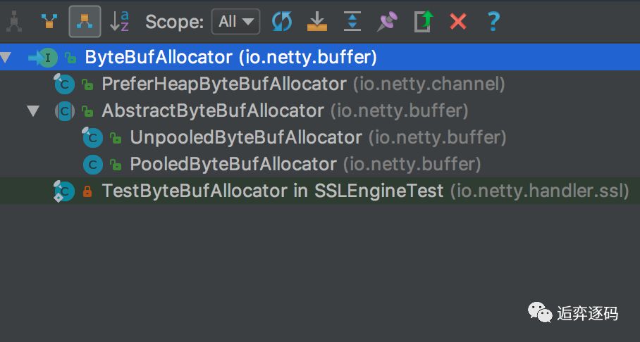 ByteBufAllocator是一个专门负责ByteBuf分配的接口,对应的Unpooled实现类就是UnpooledByteBufAllocator。在UnpooledByteBufAllocator类中可以看到UnpooledByteBufAllocator.DEFAULT变量是一个final类型的静态变量