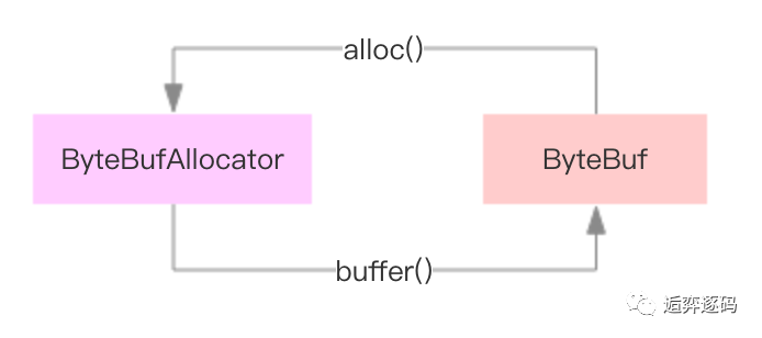 ByteBuf和ByteBufAllocator之间是一种相辅相成的关系,ByteBufAllocator用来创建一个ByteBuf,而ByteBuf亦可以返回创建他的Allocator。ByteBuf和ByteBufAllocator之间是一种 抽象工厂模式