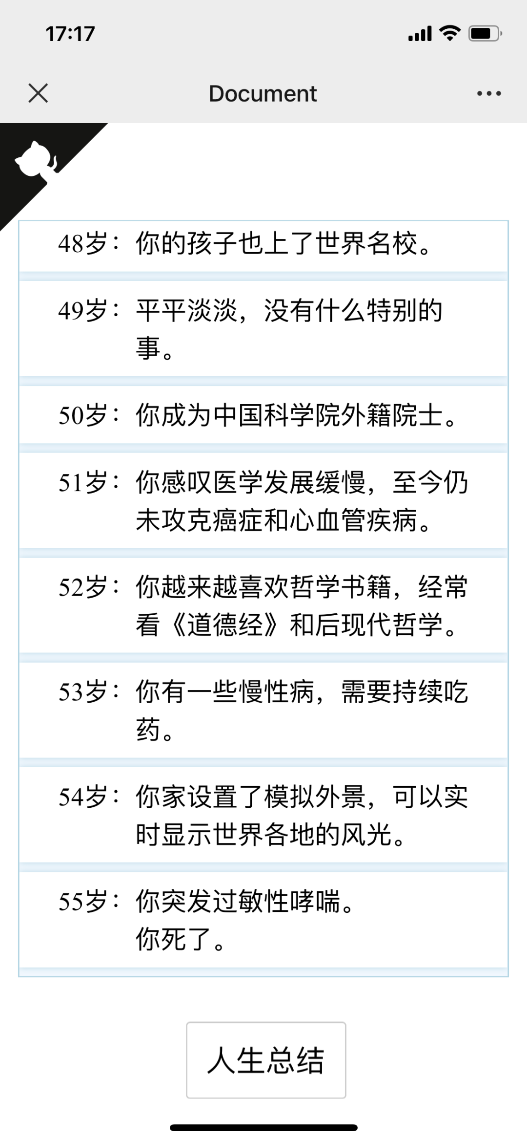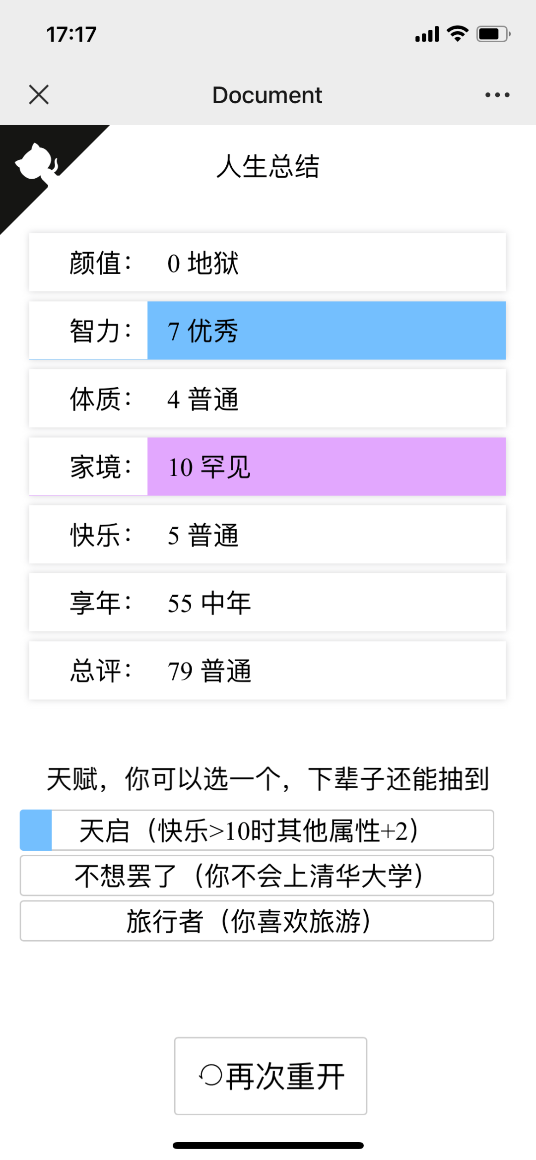 在线游戏地址:http://liferestart.syaro.io/view/index.html