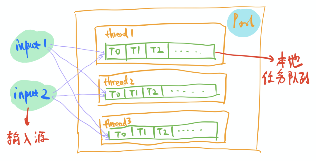 这种图执行框架。因为需要被放入线程池中的任务,都是可以无序并发执行的,有依赖的任务也不会被放入 pool 中啊。