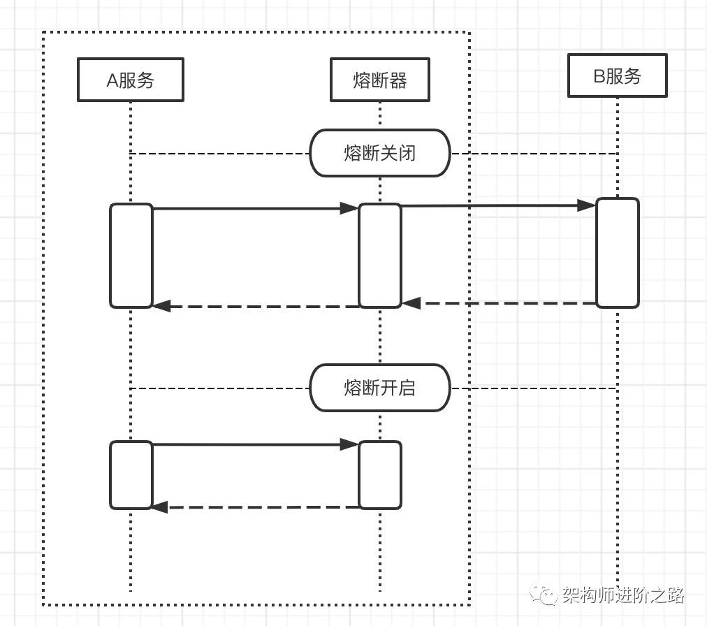详细解释一下,假设 A 服务调用 B 服务,B 发生故障后,A 开启熔断: