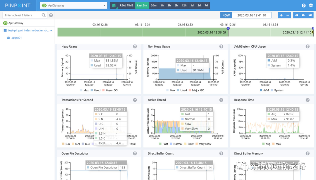 此外,Pinpoint 还支持堆内存,活跃线程,CPU,文件描述符等监控。