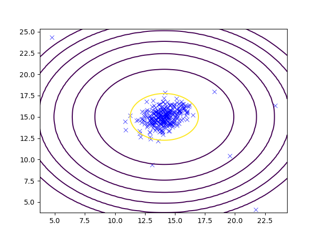 要自动识别异常点,这时候多维高斯分布能够为我所用,利用样本数据来估计高斯分布的参数(),然后再计算各样本的高斯概率值,并且还可以把高斯分布概率密度函数的投影画出来。