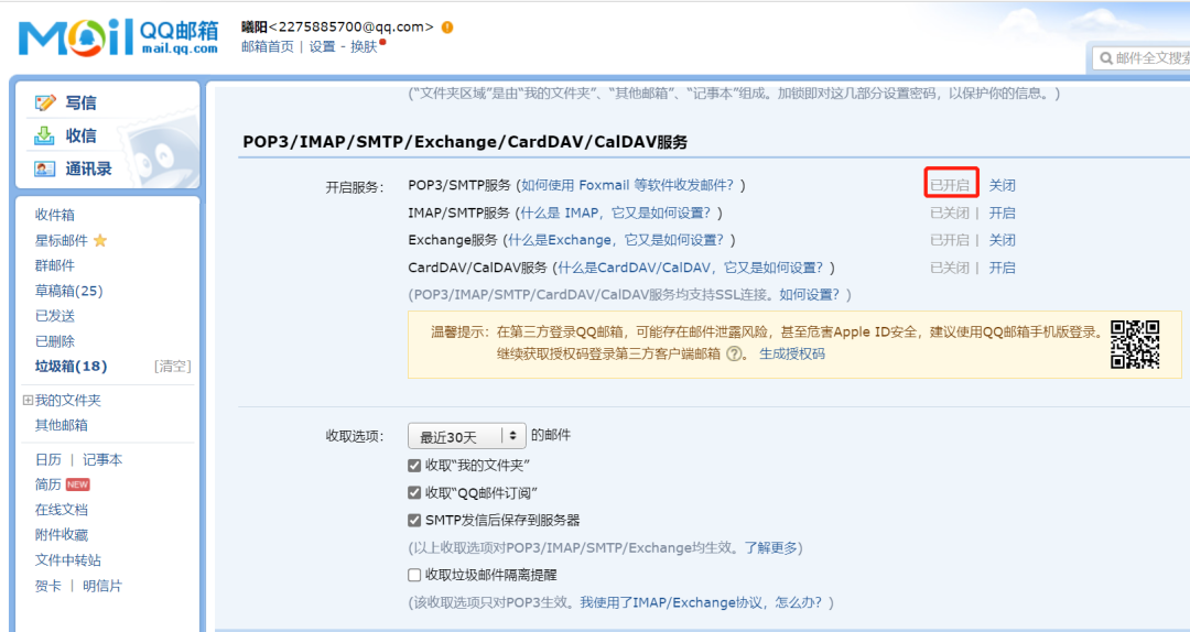 在用python连接邮箱时,需要开启POP3/SMTP服务,本文以qq邮箱为例进行讲解,其它邮箱开启方法请自行百度。