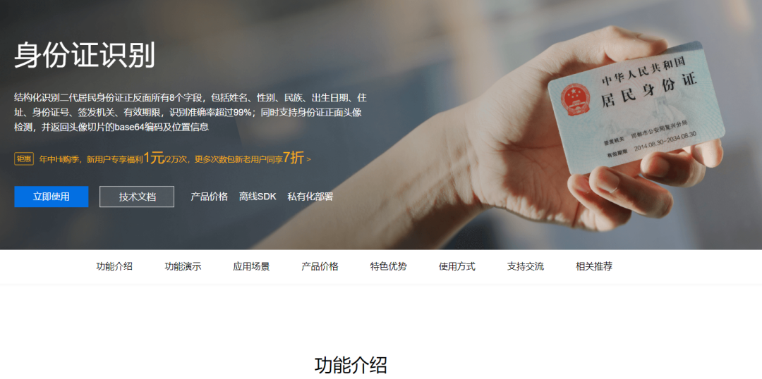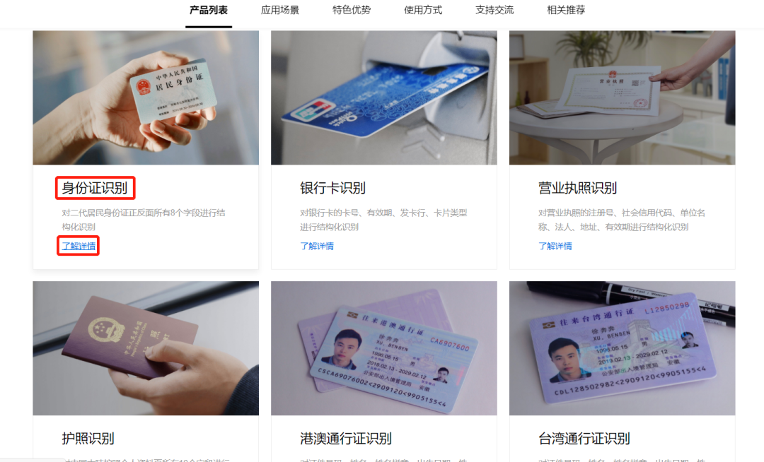 找到身份证识别,点击了解详情,即可进入如下界面:
