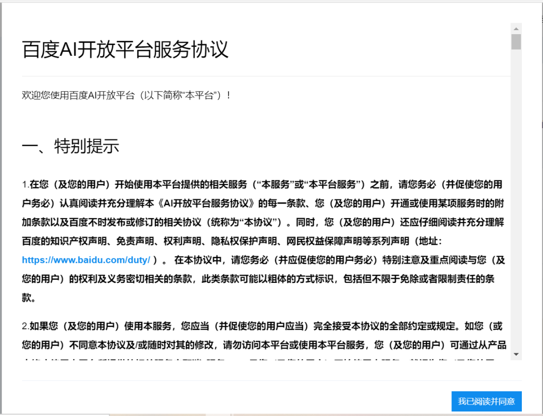 点击我已同意百度AI开放平台服务协议,就可以进入如下界面: