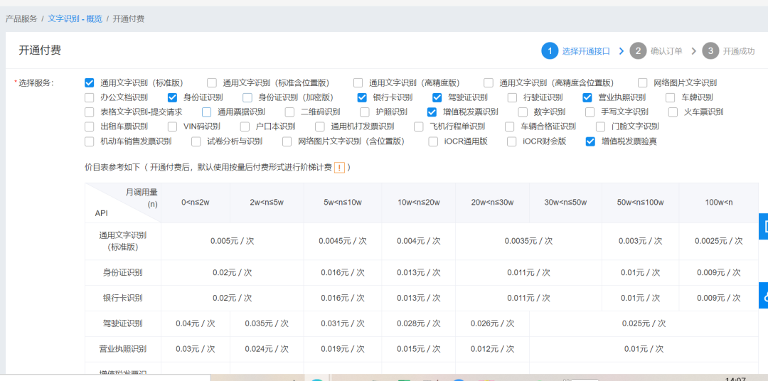 接着可以勾选要开通的识别功能,具体如下: