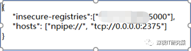 基于slave的工作流程,slave镜像中要装有git、java、docker-client。往期公众号提到过,windows的镜像都比较大,每次都去拉取的话比较耗时间,这就是为什么选择使用宿主机的docker和镜像,在宿主机完成打镜像,推镜像的过程。为完成slave容器内docker-client和宿主机docker通信,选择了docker的TCP通信模式,对宿主机的docker daemon.json做如下修改,使用docker -H tcp://IP:Port[命令] 就可以实现docker的远程通信。(注:windows docker不支持unix下的socket通信技术。)