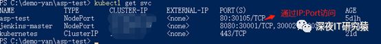 上图显示了被k8s编排的Windows容器,由图可以看出,还有一个jenkins应用,所以这次不仅只是简单的将应用通过k8s部署,还通过jenkins做了CICD,进一步提高开发效率。要注意的是:Jenkins-mater要通过k8s部署,部署时要暴露访问端口(如8080)和jenkins-slave连接端口(如50000)两个端口,最开始采用二进制安装单机jenkins,导致后期部署应用时jenkins-slave无法连接jenkins-master的结果。