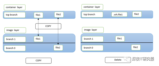 删除操作:使用3.1中方法对镜像层中要删除的文件进行标记,同时删除容器层中的文件。