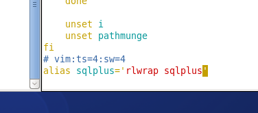 7.编辑/etc/bashrc,在最后一行加入alias sqlplus=’rlwrap sqlplus’