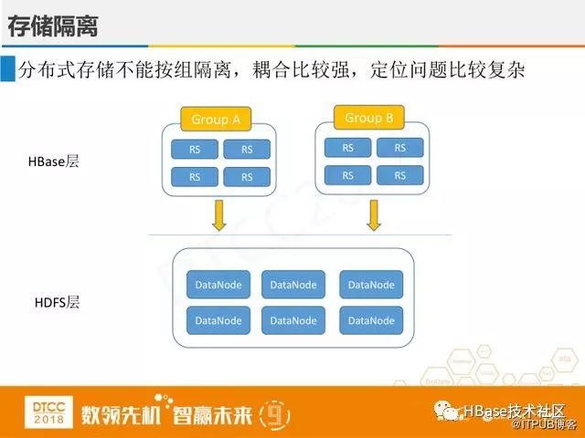 上图是HBase和Hadoop支持的隔离方案,虽然能在一定程度上做到了隔离,但这种隔离不彻底,耦合比较强,定位问题比较复杂,依旧不能实现业务上隔离。