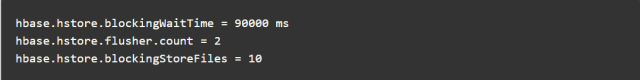 当达到hbase.hstore.blockingStoreFiles配置上限时,会导致flush阻塞等到compaction工作完成。阻塞时间是hbase.hstore.blockingWaitTime,可以改小这个时间。hbase.hstore.flusher.count可以根据机器型号去配置,可惜这个数量不会根据写压力去动态调整,配多了,非导入数据多场景也没用,改配置还得重启。