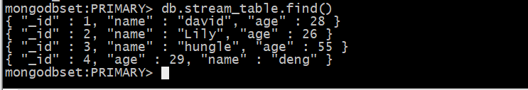 现有MongoDB的mongo_stream库下集合stream_table,文档数据如下: