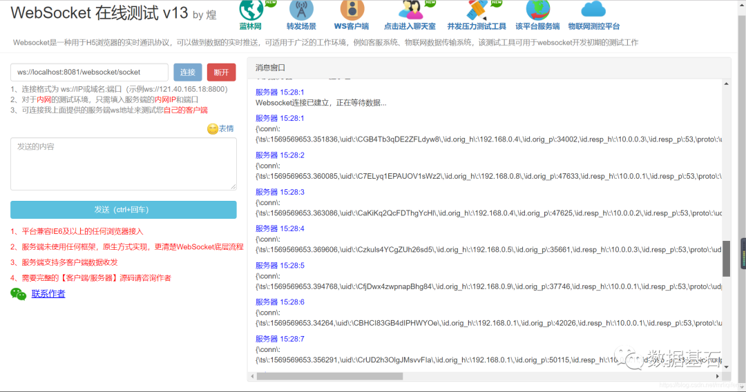 将此项目运行后,打开http://www.websocket-test.com/此网址即可进行在线测试