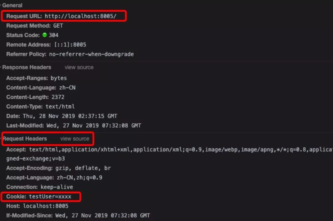 所以 Cookie 才在请求头中出现,接下来我们访问 http://localhost:8005,我们发现没有 Cookie 字段了,这就是 Path 控制的路径。